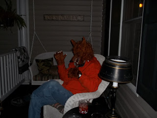 Dave put on the wolf mask he wore when Meg was Little Red Riding Hood.